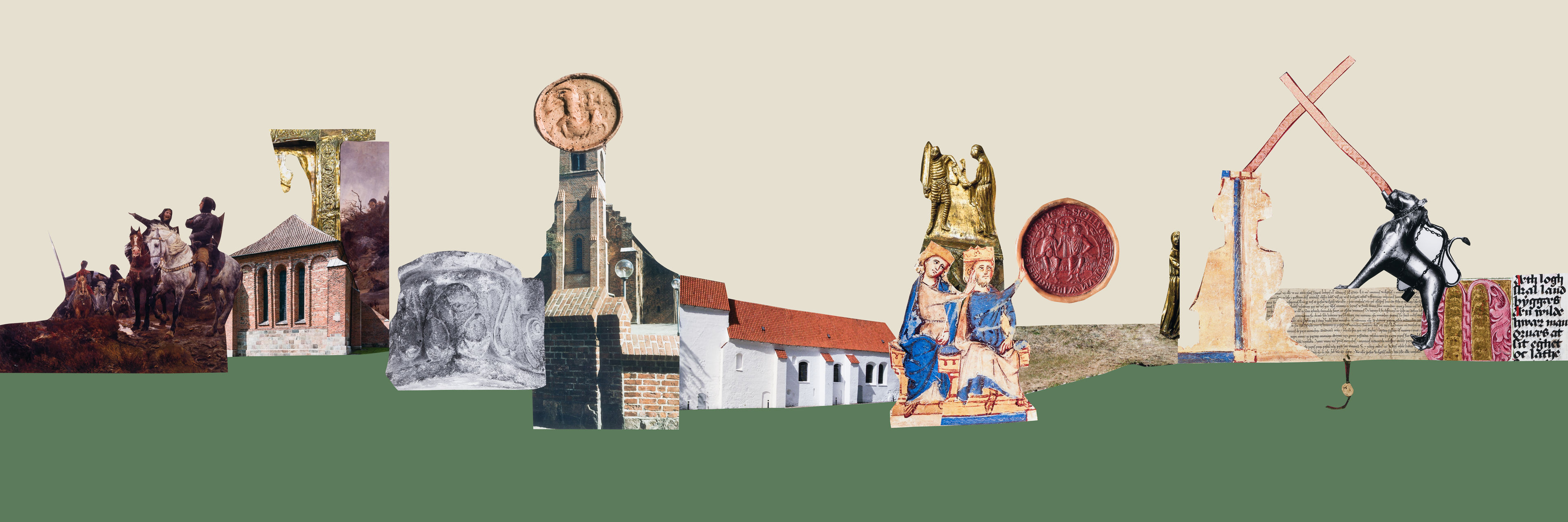 Kong Erik Klipping blev efter drabet i Finderup Lade ført til Viborg Domkirke, hvor han blev gravlagt. Bevaret til i dag er bl.a. en lille signet (til at besegle breve), der viser et lam med et kors på ryggen - et såkaldt Gudslam - og et brikvævet guldbånd. Signeten og båndet findes som kopi på Viborg Museum. I collagen ses signeten på toppen af kirketårnet, og guldbåndet ved malmløven i højre side.