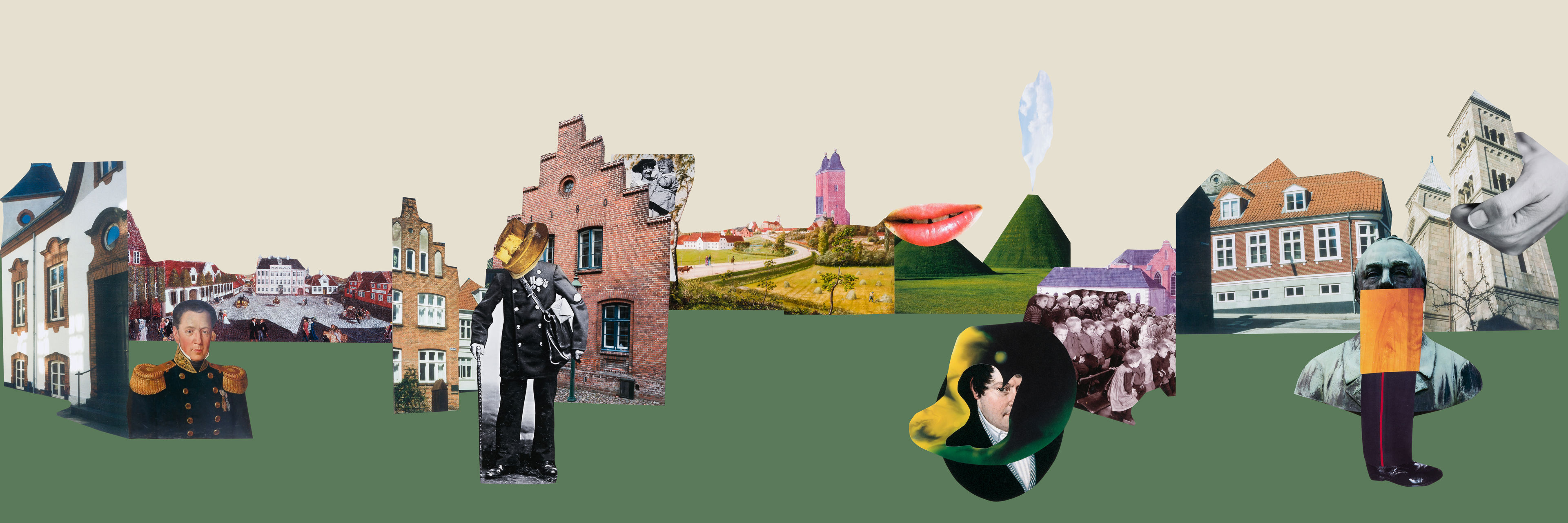 Billedet af de grøngule marker er af N.G. Rademacher og viser Viborg set fra Borgvold i 1859. Ovenover knejser Viborg Domkirkes tårn, taget fra et oliemaleri af Rasmus Henrik Kruse (1796-1877). Han brugte det meste af sin karriere på at rejse rundt i Jylland og male herregårde, kirker, fortidsminder og små motiver, der kendetegnede købstæderne.