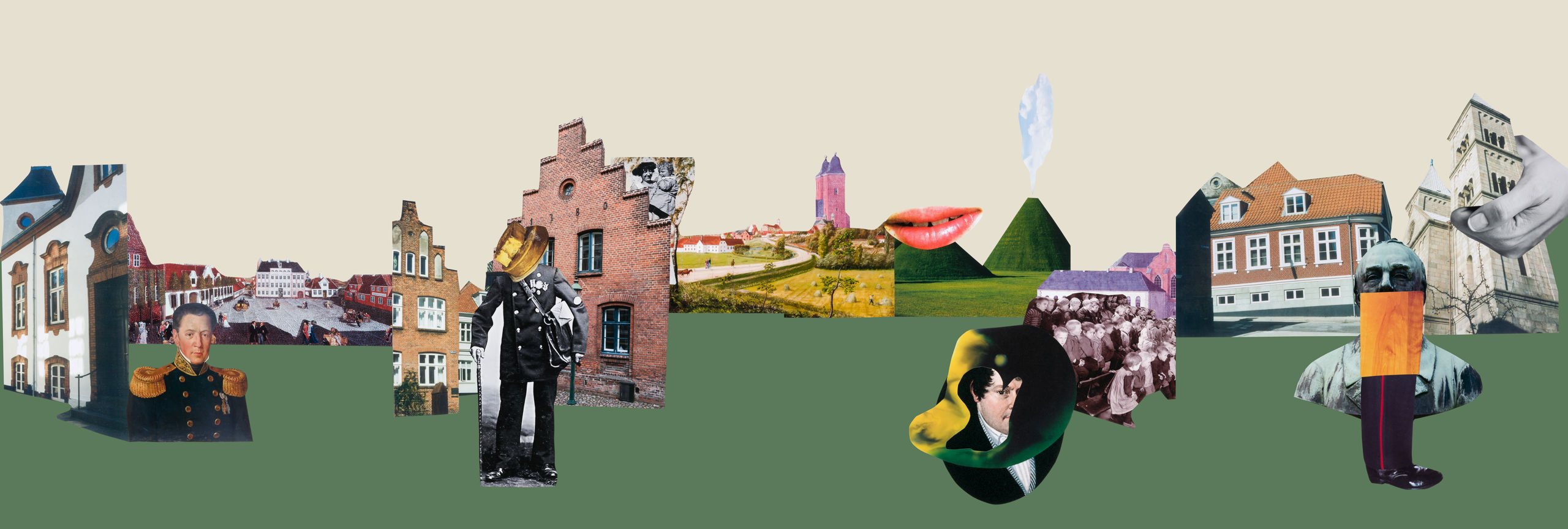 Billedet af de grøngule marker er af N.G. Rademacher og viser Viborg set fra Borgvold i 1859. Ovenover knejser Viborg Domkirkes tårn, taget fra et oliemaleri af Rasmus Henrik Kruse (1796-1877). Han brugte det meste af sin karriere på at rejse rundt i Jylland og male herregårde, kirker, fortidsminder og små motiver, der kendetegnede købstæderne.