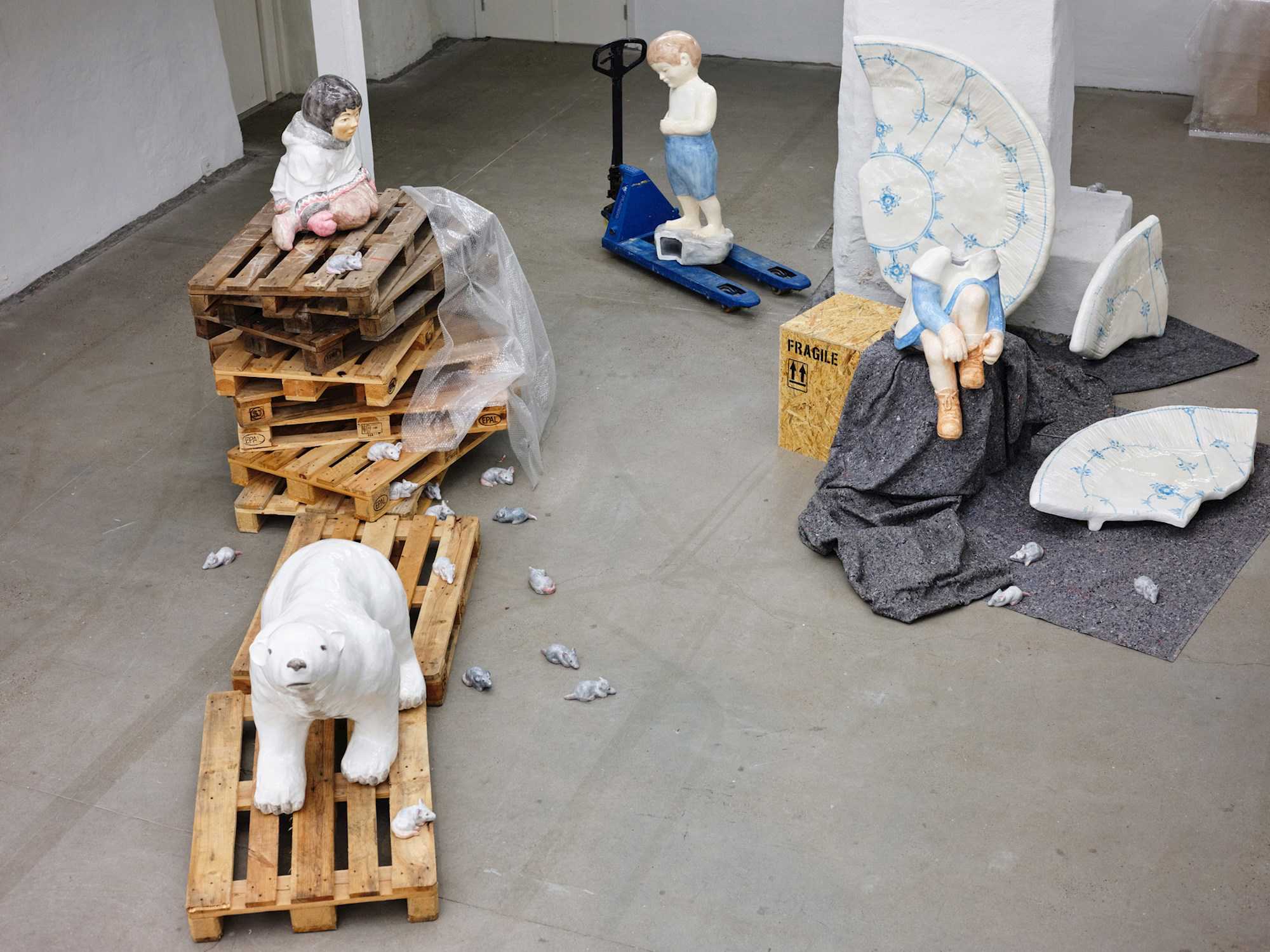 De små traditionelle danske samleobjekter og den særlige stemning i antikvitetsbutikken er udgangspunktet for den omfangsrige kunstneriske visuelle undersøgelse, der er grundlaget for udstillingen fragile. Kunstner-duoen skaber en kompleks stedspecifik installation i kunsthallens østfløj, der mimer antikvitetsbutikkens fortættede opstillinger, og forstærker og forstørrer porcelænsfigurernes tematikker. Emner som identitet, tilhørsforhold og historisk værdi sættes i spil.