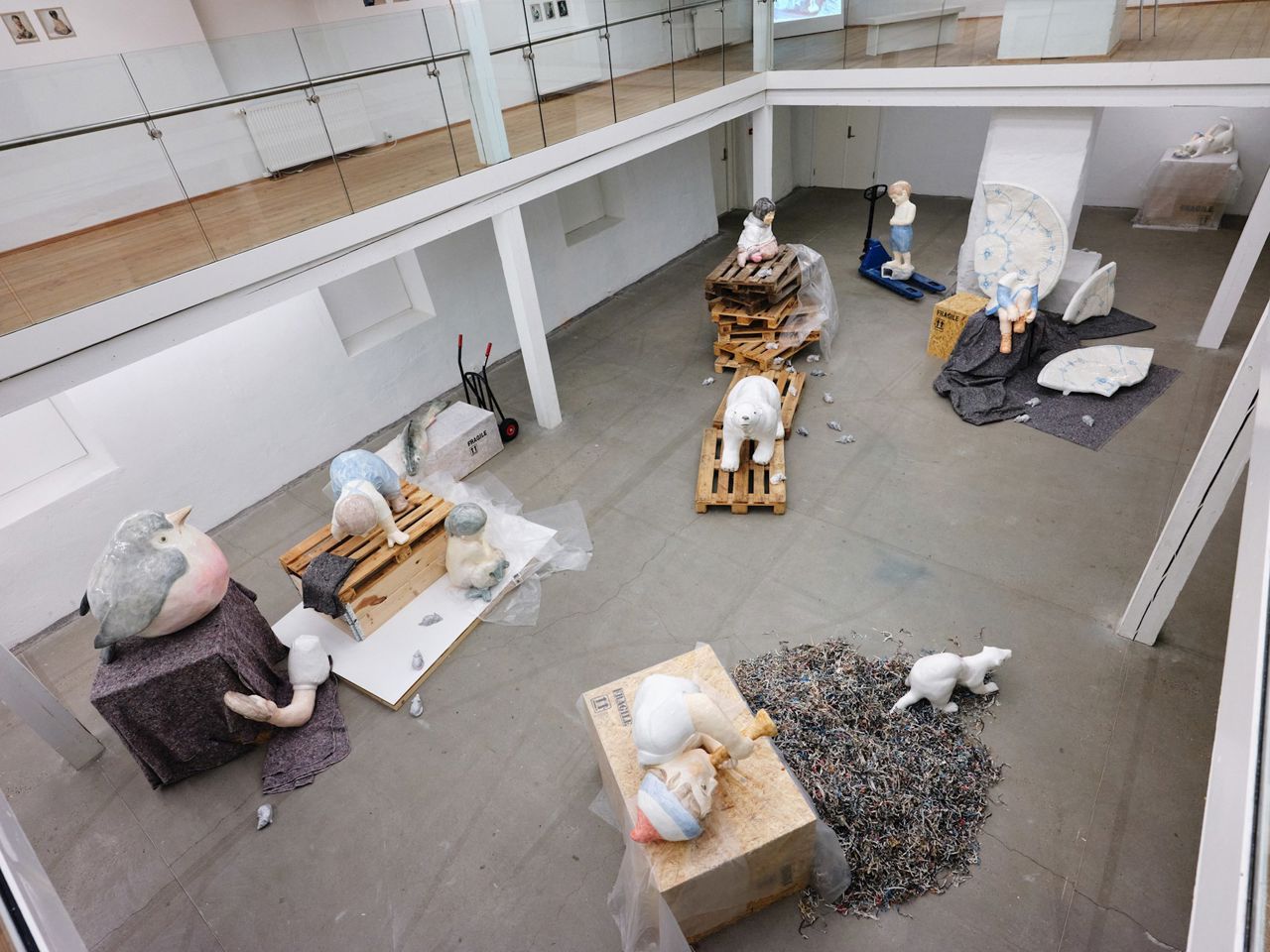 Kunstnerduoen og tvillingesøstrene Maria og Natalia Petschatnikov giver traditionelle danske porcelænsfigurer nyt liv, når de forvandler Viborg Kunsthals østfløj til en stedsspecifik totalinstallation med udstillingen fragile.