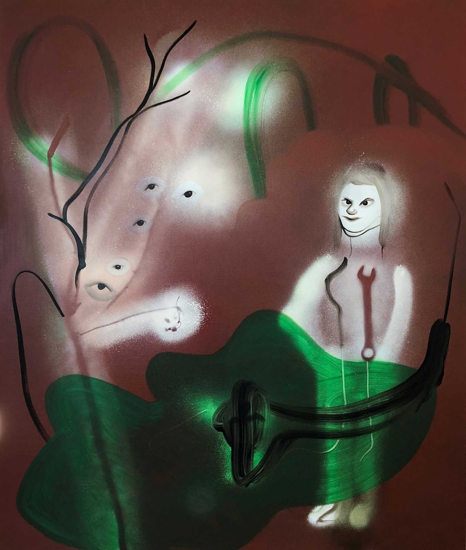 Kathrine Ærtebjerg, født 1969 og uddannet på Det Kgl. Danske Kunstakademi i København 1995-2002, bruger sjældent pensel, men ofte klude og fingre, og har udviklet et formsprog, der er hurtigt genkendeligt som netop hendes. Alligevel bliver hun ofte overrasket over de motiver, der dukker op på billederne.