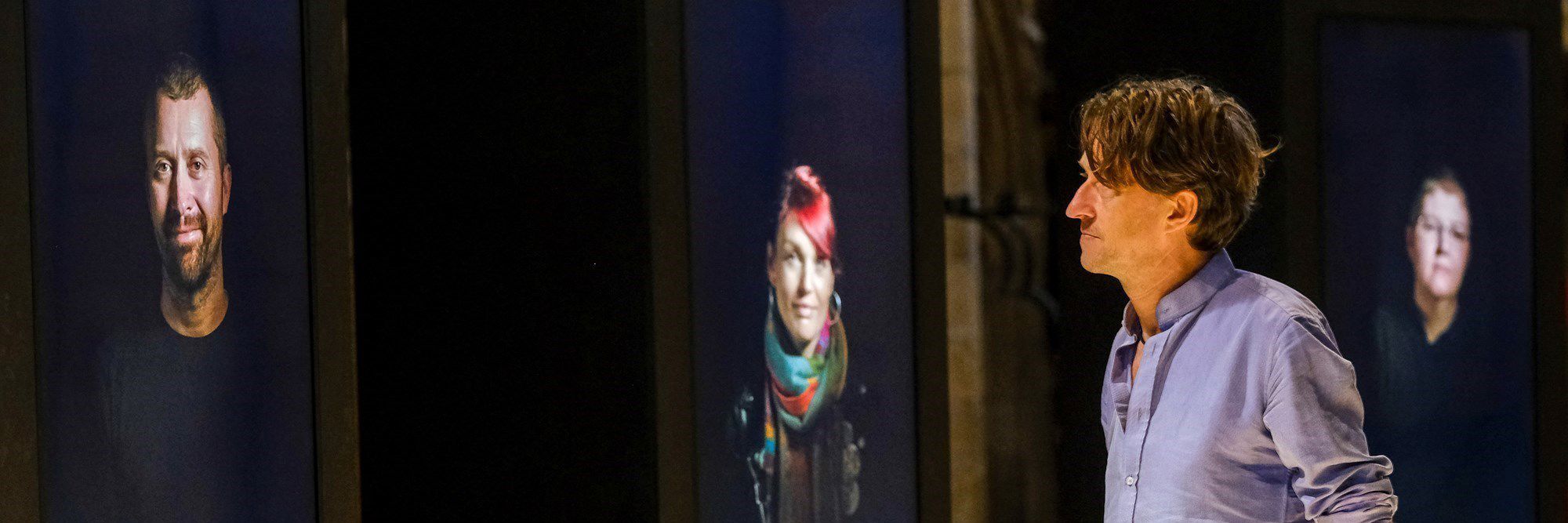 To store skærme monteret i vinduerne i Viborg Kunsthals gård viser forskellige portrætter. Hver portrætteret person kigger på et billede af en person de elsker.