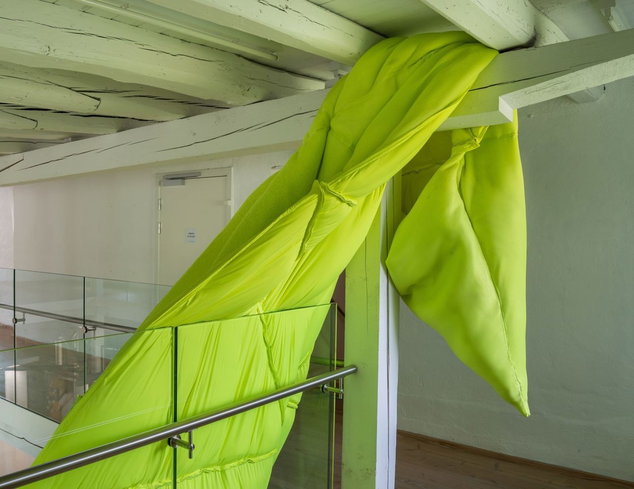 Blomsterbede, en fotografisk installation og en tekstilskulptur får beskuerne til at forholde sig til deres færden og udfordrer vores fysiske vante rammer.