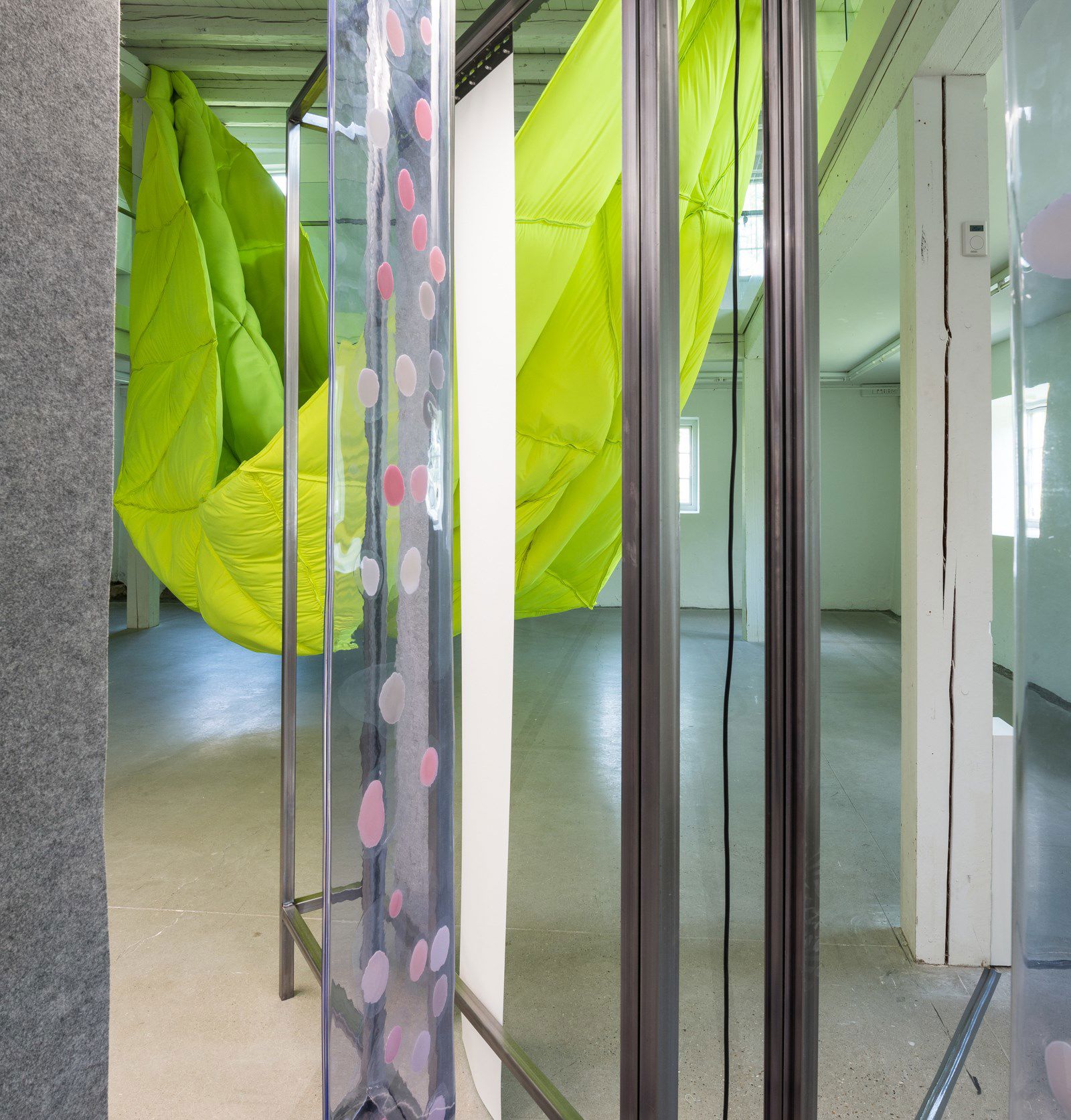 Den stedspecifikke udstilling “Step back, step back please” tager udgangspunkt i den globale pandemi, der fundamentalt har forandret den verden, vi lever i.