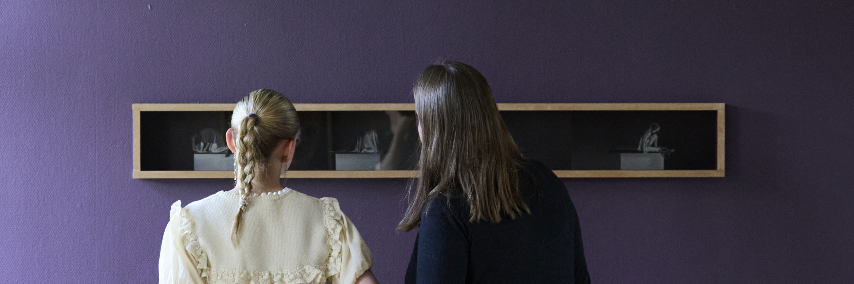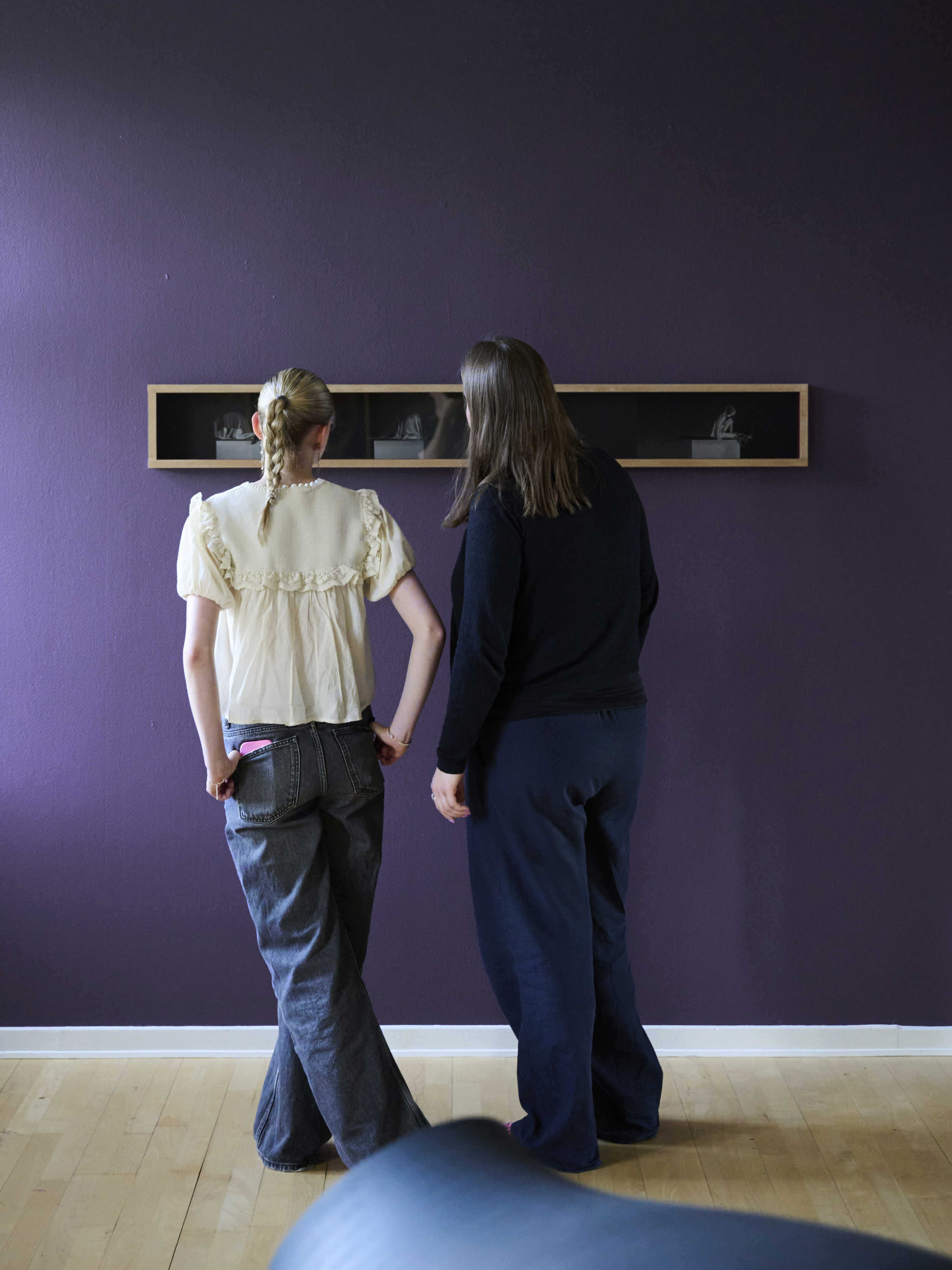 I MÅNE OP udvikler og udforsker billedkunstner Sophia Kalkau og digter Ursula Andkjær Olsen deres eksisterende (sam-)arbejde. Her fletter nye og gamle værker sig ind imellem hinanden og danner tråde, der løber gennem hovedfløjens seks udstillingsrum. Hvert rum er både sin egen enhed og del af det større narrativ. De har karakter af særegne visuelle og auditive total-installationer, der inviterer publikum ind i et abstrakt rum af drømmetydninger og tegn, der peger ind i nuet, ud i fremtiden – og ud i verden.